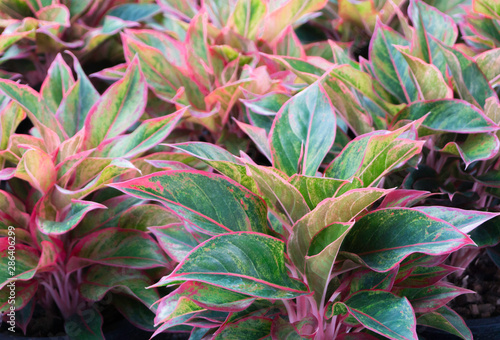 Tropical Leaf Aglaonema Ornamental Pink Red And Green Leaves Foliage Plant At Garden Nature Texture Background Buy This Stock Photo And Explore Similar Images At Adobe Stock Adobe Stock